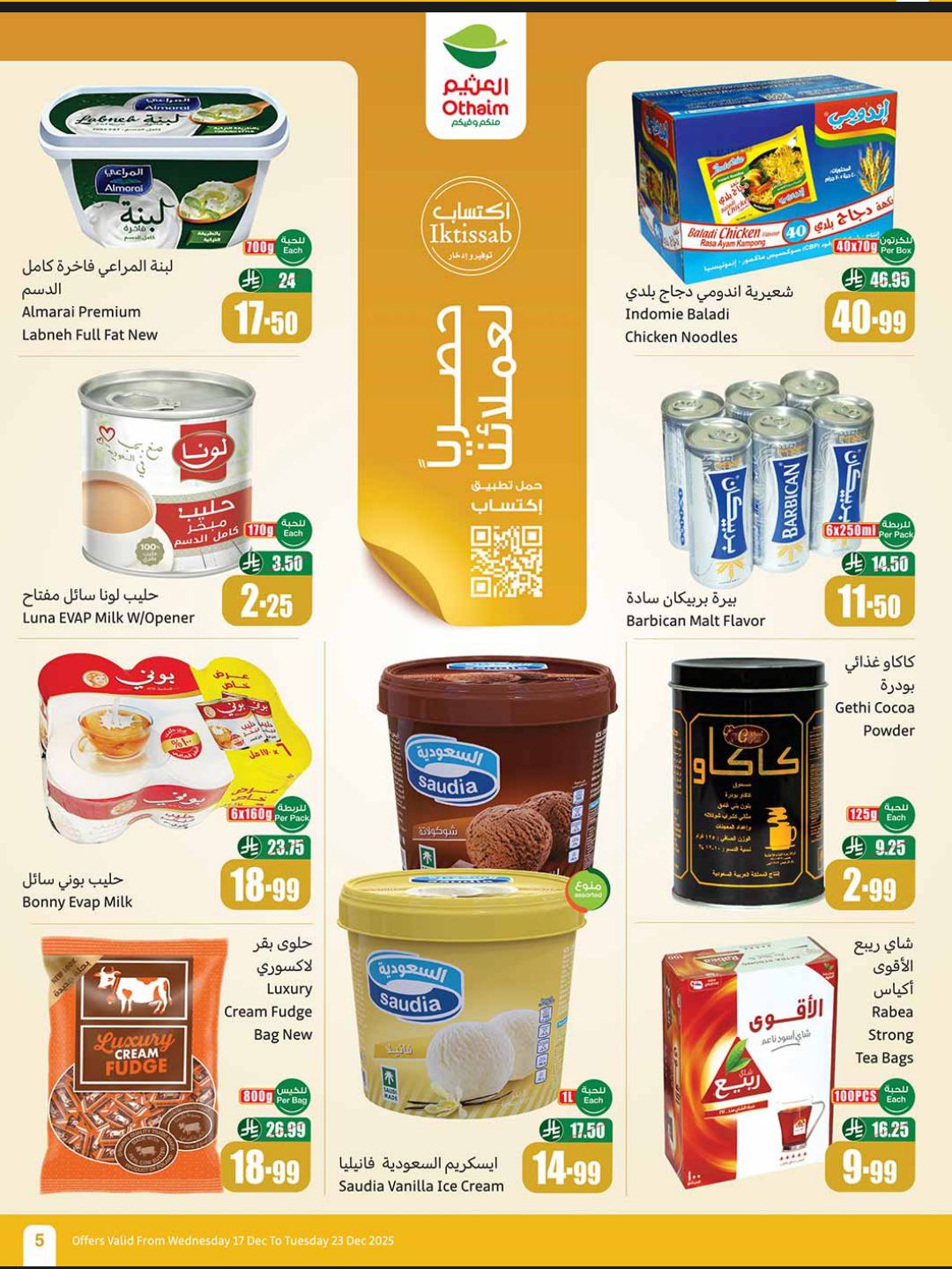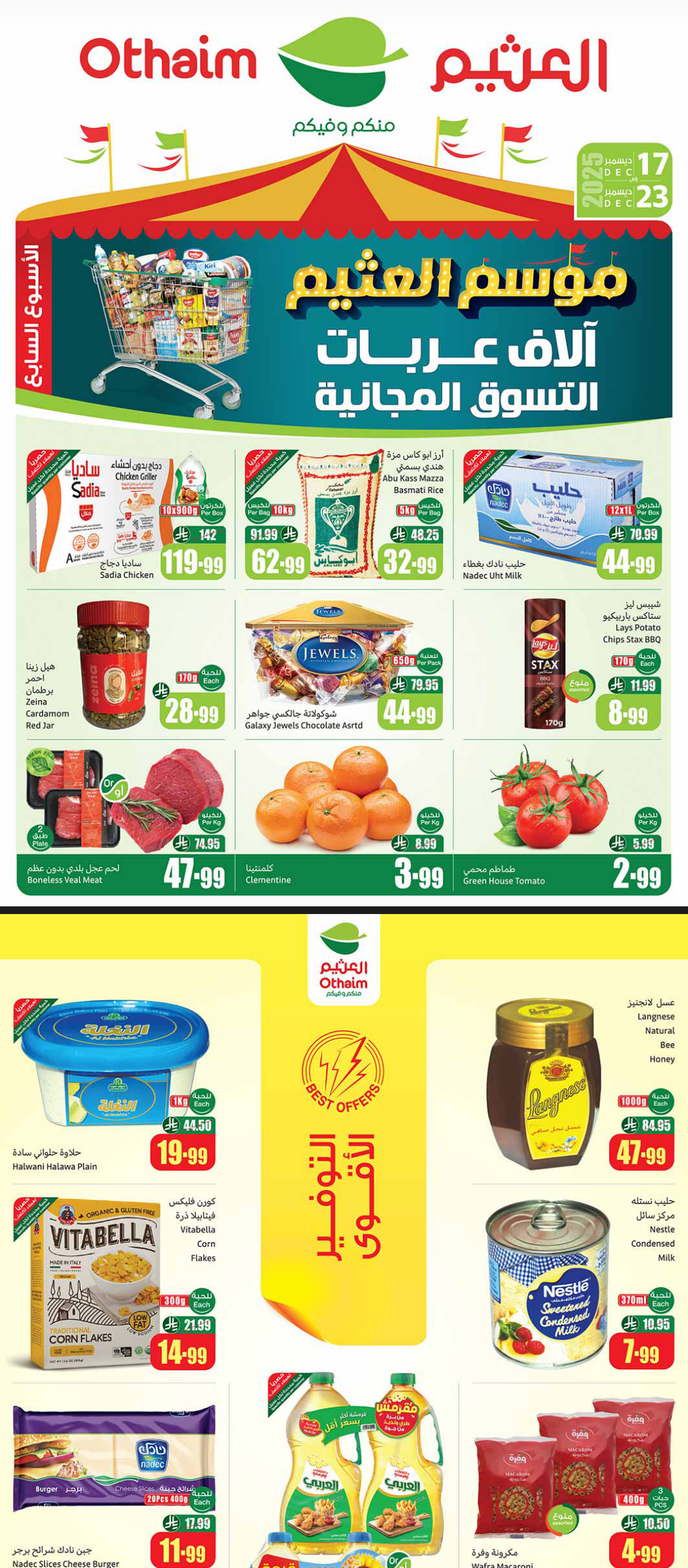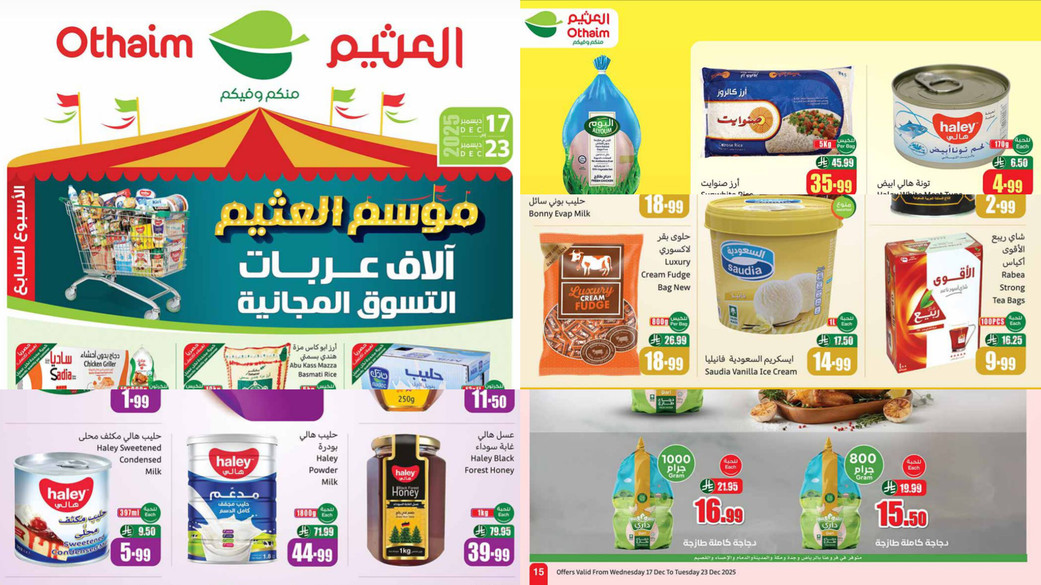 تستمر أسواق العثيم السعودية في إبهار عملائها بتقديم أقوى الخصومات ضمن "موسم العثيم"، حيث أطلقت المجلة الجديدة التي تضم مئات السلع الأساسية بأسعار تنافسية . تبدأ هذه العروض من يوم الأربعاء 17 ديسمبر وتستمر حتى الثلاثاء 23 ديسمبر 2025، أو حتى نفاد الكمية في جميع فروع المملكة نفنثي بناء على ما تم الاعلان عنه رسميا من الجهات المختصة .
