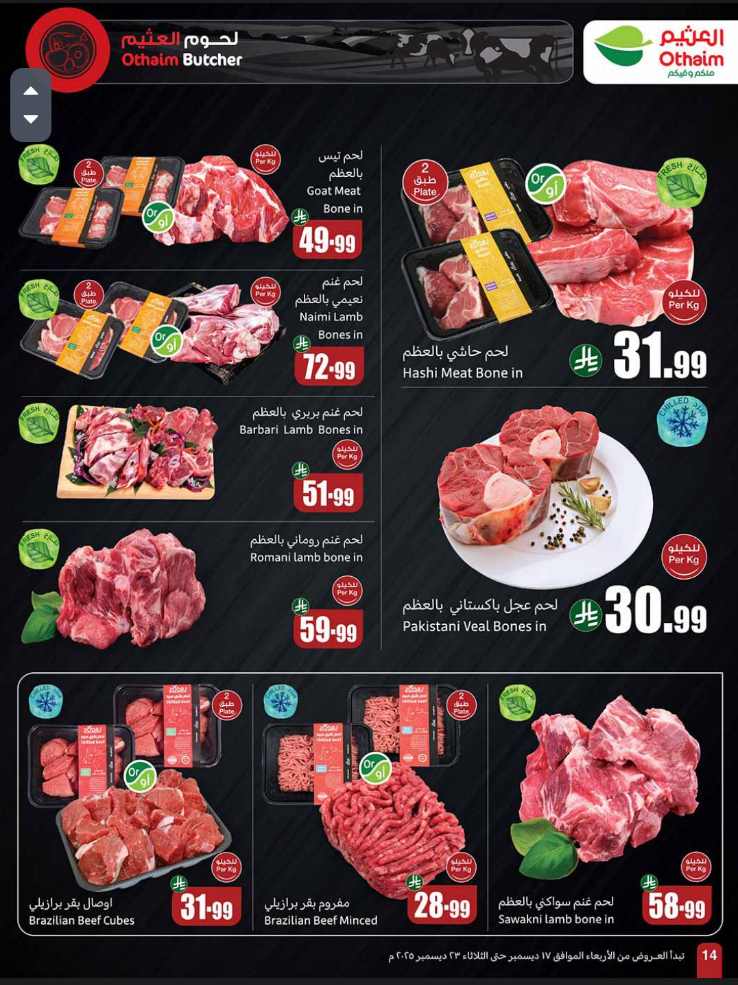 يتميز قسم "لحوم العثيم" (Othaim Butcher) بتقديم أجود أنواع اللحوم بأسعار مخفضة جداً هذا الأسبوع وتتضمن المنتجات التالية: