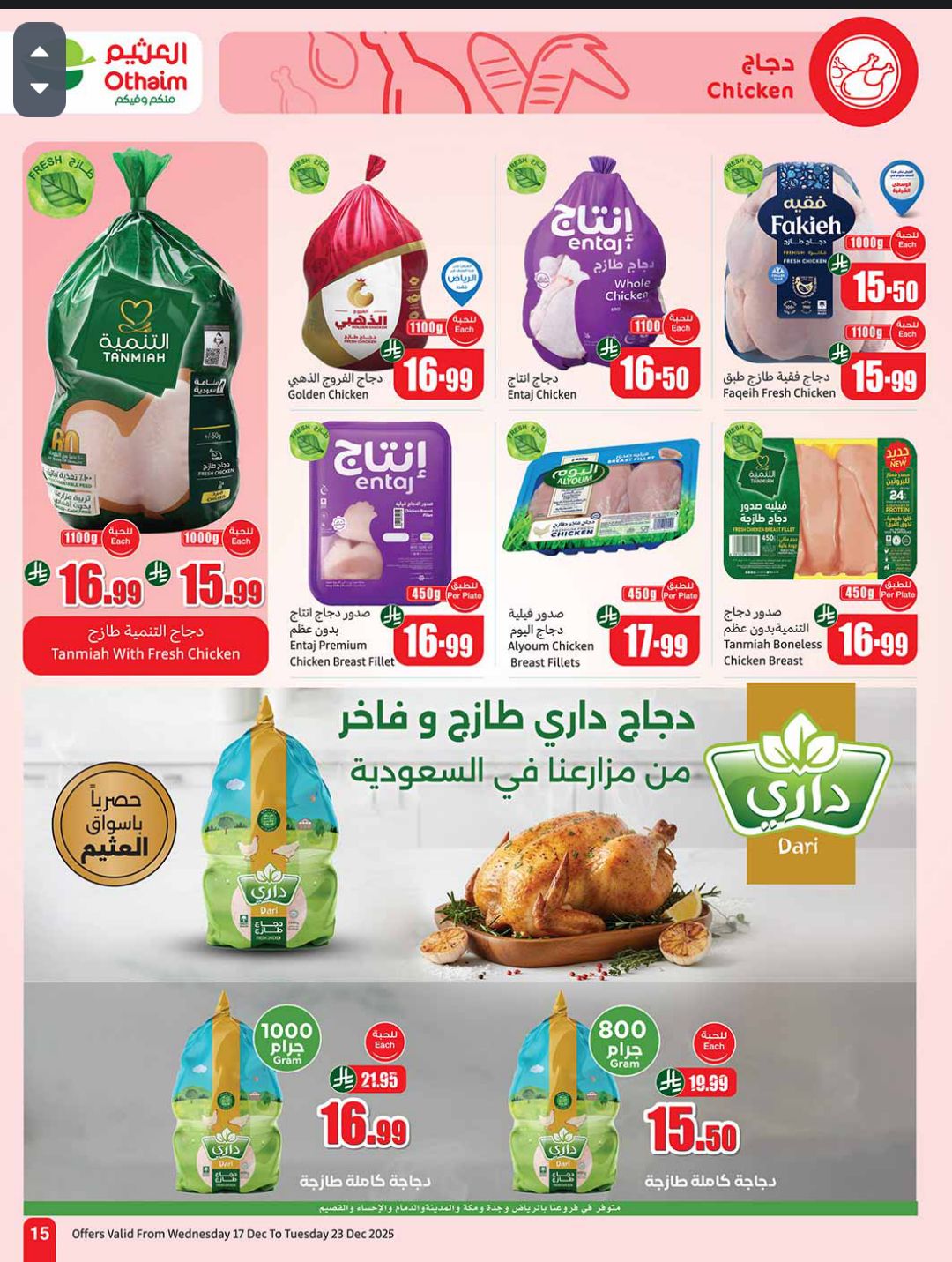 - دجاج التنمية طازج (1100 جرام): بسعر 16.99 ريال.