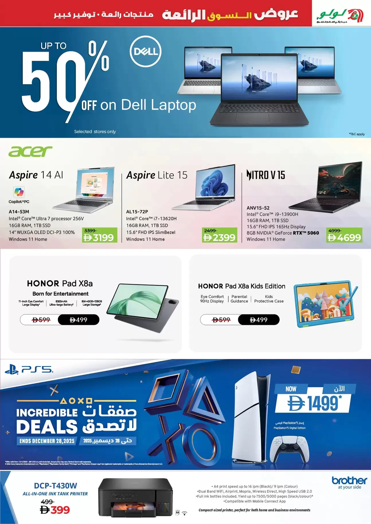 لم ينسَ لولو عشاق الألعاب والطلاب، حيث شملت العروض أجهزة لابتوب ديل (Dell) بخصومات تصل إلى 50%: