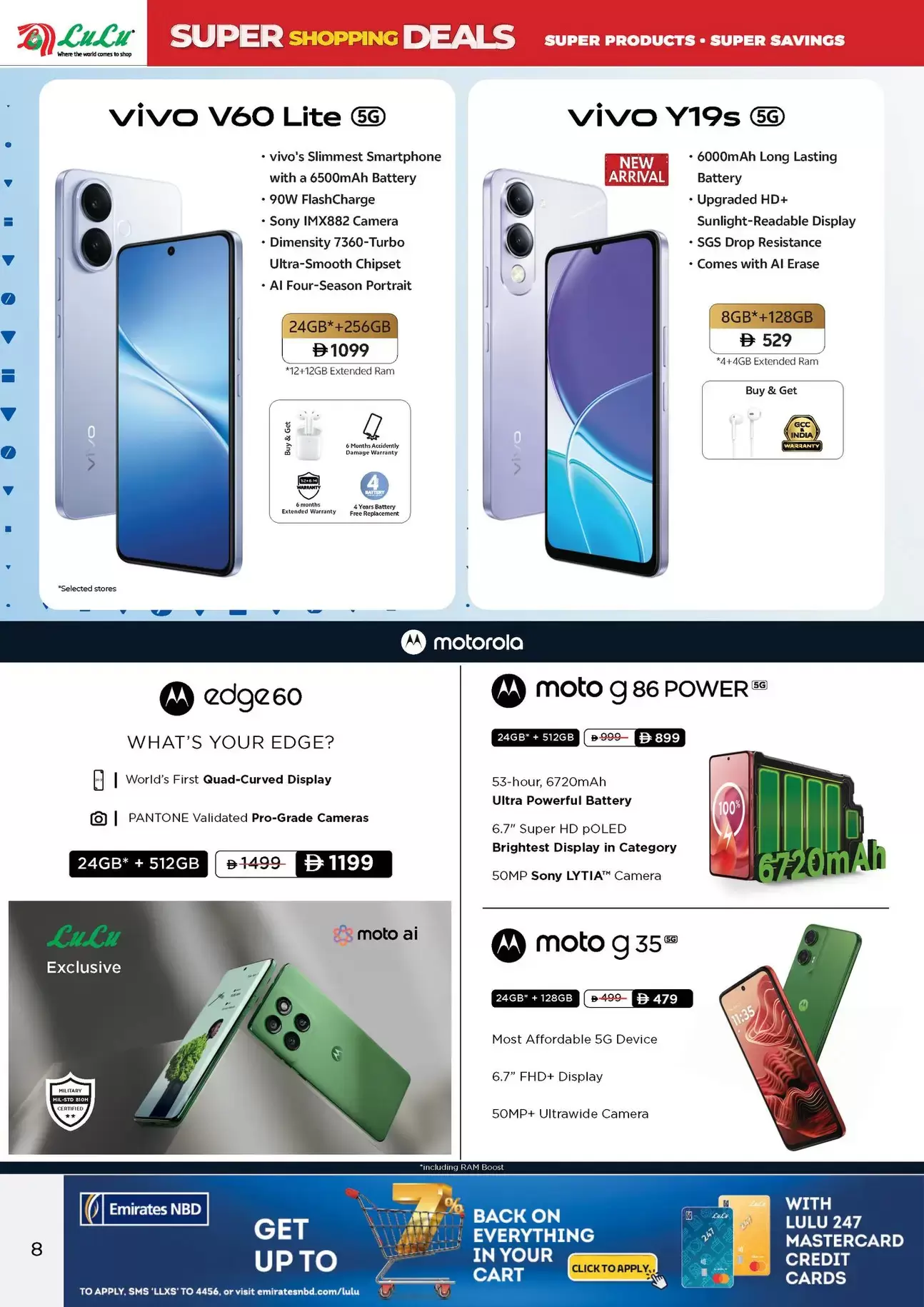 - هاتف Vivo V60 Lite 5G: يتميز ببطارية ضخمة وشحن سريع، متاح بسعر 1,099 ريال/درهم.