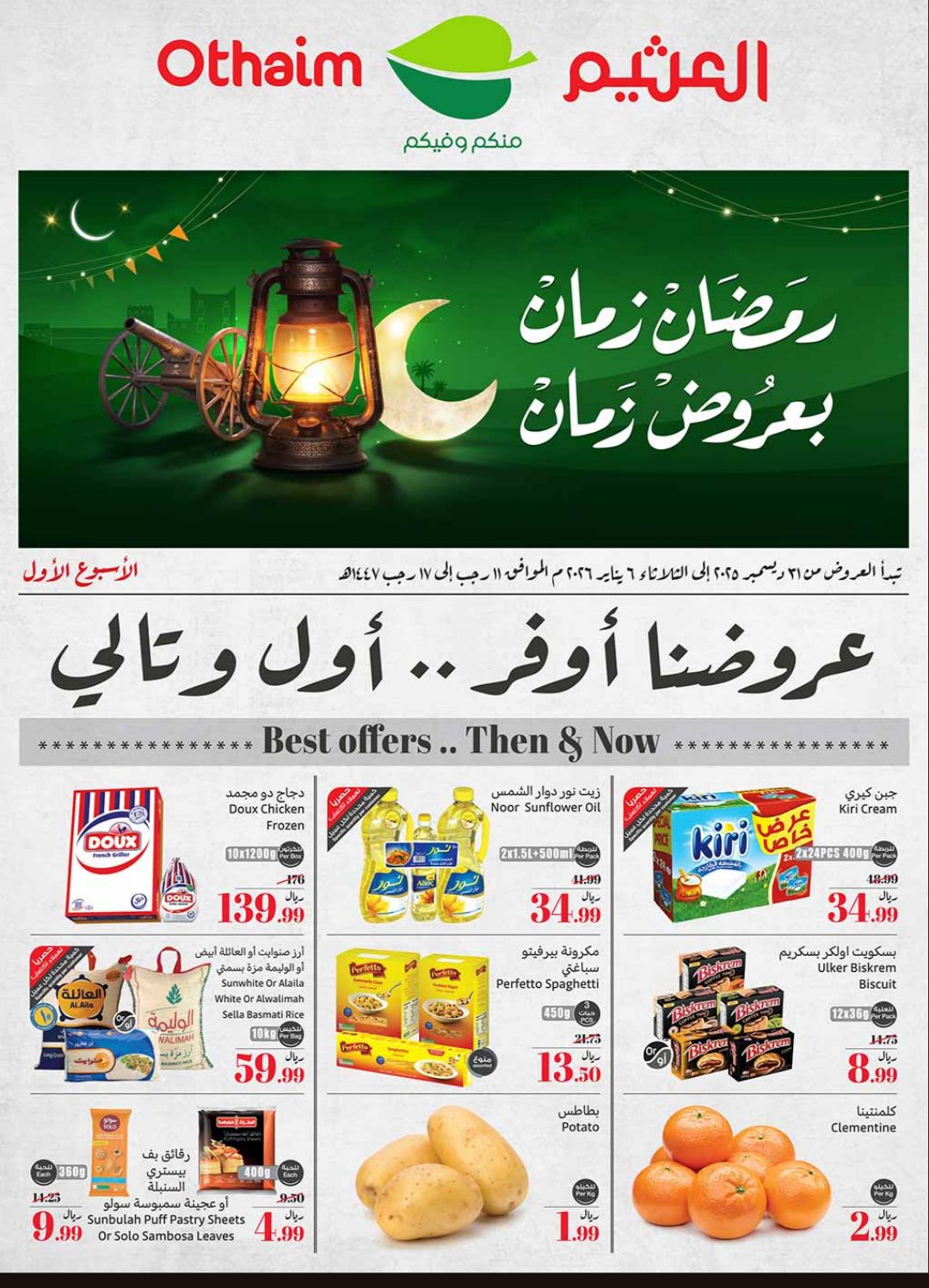 تقدم أسواق العثيم في السعودية موجة جديدة من العروض الحصرية التي تمتد من الأربعاء 31 ديسمبر 2025 إلى الثلاثاء 6 يناير 2026، حيث تشمل تخفيضات كبيرة على مجموعة واسعة من المنتجات تشمل المشروبات والمنظفات والسلع المنزلية . تسعى هذه العروض إلى توفير احتياجات الأسر السعودية بأسعار تنافسية وجودة عالية، مما يجعلها وجهة مثالية للتسوق في بداية العام الجديد ارثلظ بناء على ما تم الاعلان عنه رسميا من الجهات المختصة .