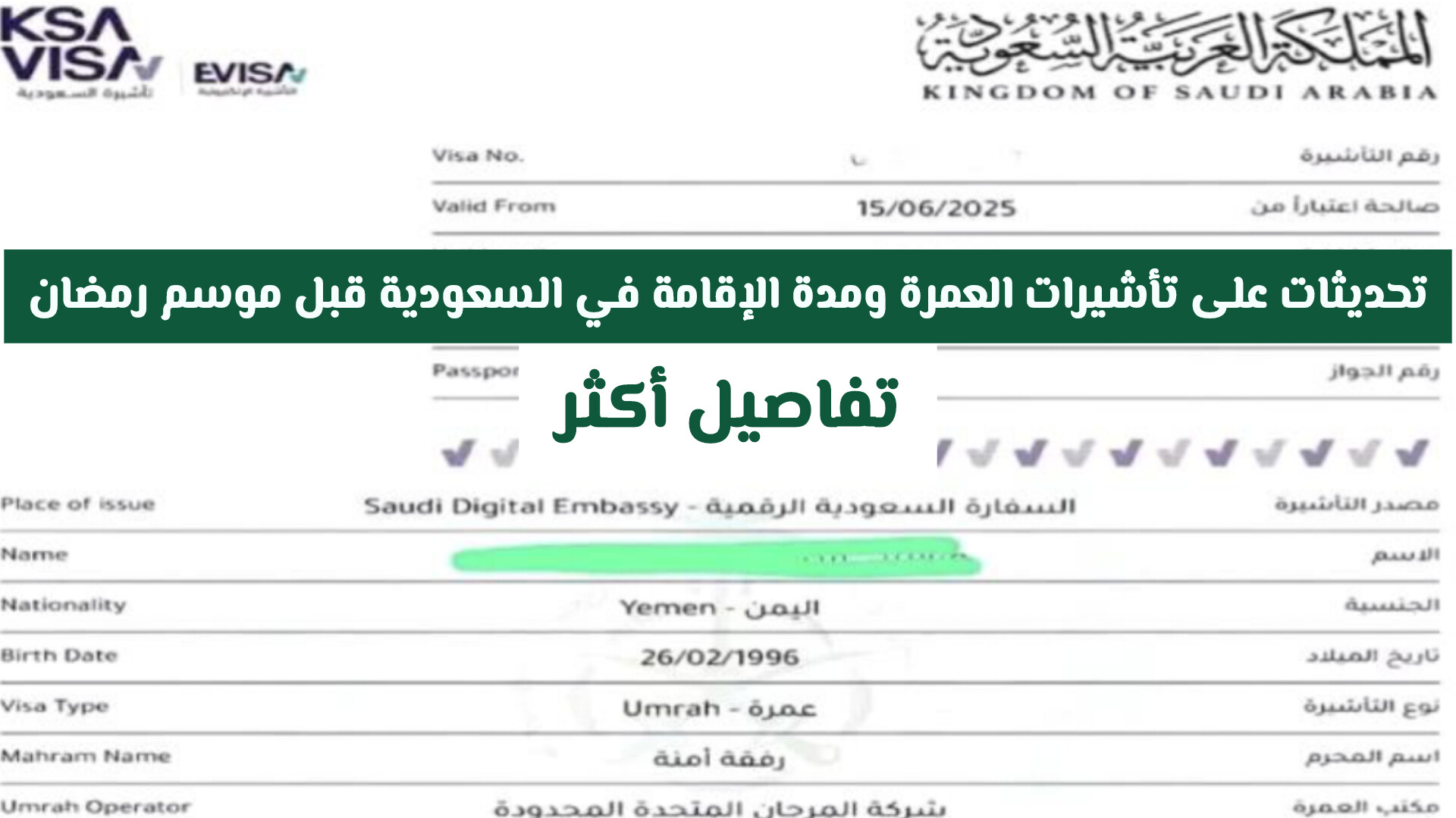 تستمر المملكة العربية السعودية في تحديث منظومة تأشيرات العمرة والإجراءات المرتبطة بها بهدف تنظيم تدفق المعتمرين ورفع جودة الخدمات. وتشمل آخر التعديلات تقليص صلاحية التأشيرة قبل السفر، بينما تُشير مصادر مطلعة إلى احتمال تعديل مدة الإقامة نفسها مع اقتراب شهر رمضان المبارك لضمان أفضل إدارة للمواسم ذات الإقبال العالي.