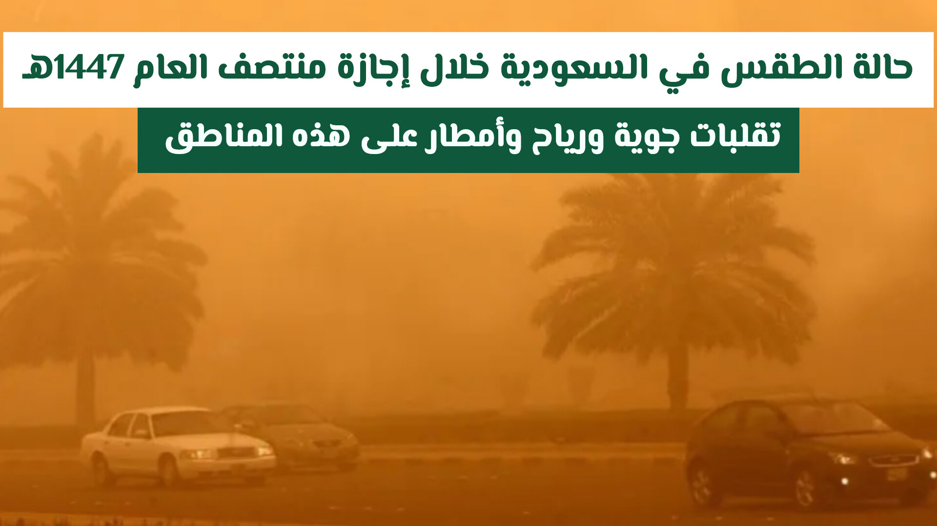 تشهد حالة الطقس في السعودية خلال إجازة منتصف العام 1447هـ تطورات جوية ملحوظة، وفق ما أعلنه المركز الوطني للأرصاد، حيث تشير التوقعات إلى تأثر عدد من مناطق المملكة بتقلبات مناخية متنوعة تشمل نشاط الرياح السطحية، وإثارة الأتربة، إلى جانب فرص لهطول الأمطار وانخفاض درجات الحرارة خلال فترات الليل والصباح الباكر.