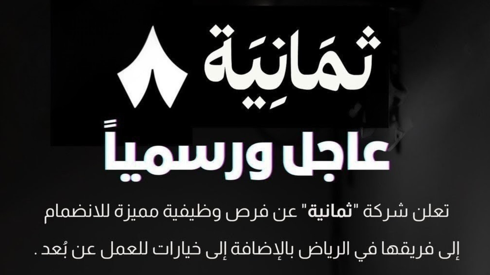 وتأتي وظائف شركة ثمانية الجديدة في إطار سعي الشركة إلى تطوير المحتوى الرقمي والإعلامي، ودعم التحول التقني، ورفع جودة الإنتاج الإعلامي بما يتماشى مع أحدث المعايير العالمية.