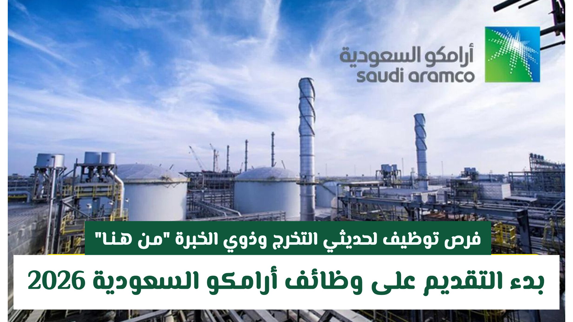 أعلنت أرامكو السعودية عن استمرار فتح باب التقديم على وظائف أرامكو للعام 2026 عبر نظام التوظيف الجديد، الذي يتيح التقديم في مسارين مختلفين: الأول للمرشحين حديثي التخرج، والثاني للمرشحين ذوي الخبرة العملية . ويهدف هذا النظام إلى توفير فرص وظيفية متنوعة لجميع الكفاءات السعودية وحبذذ بناء على ما تم الاعلان عنه رسميا من الجهات المختصة .