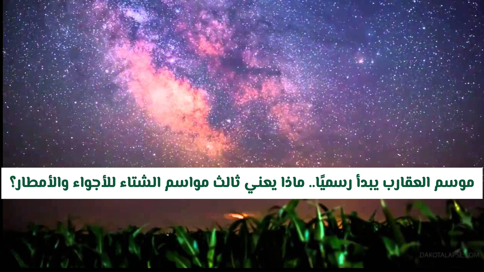 يُعد موسم العقارب ثالث مواسم الشتاء وفق التصنيف الشعبي القديم، ولا يرتبط بنجم محدد في السماء، بل هو توصيف زمني لأيام تتشابه في خصائصها المناخية. وقد اعتمد العرب قديمًا على الطوالع والنجوم كوسيلة للحساب الزمني، دون أن يعني ذلك وجود تأثير مباشر لظهور نجم معين على حالة الطقس اليومية.