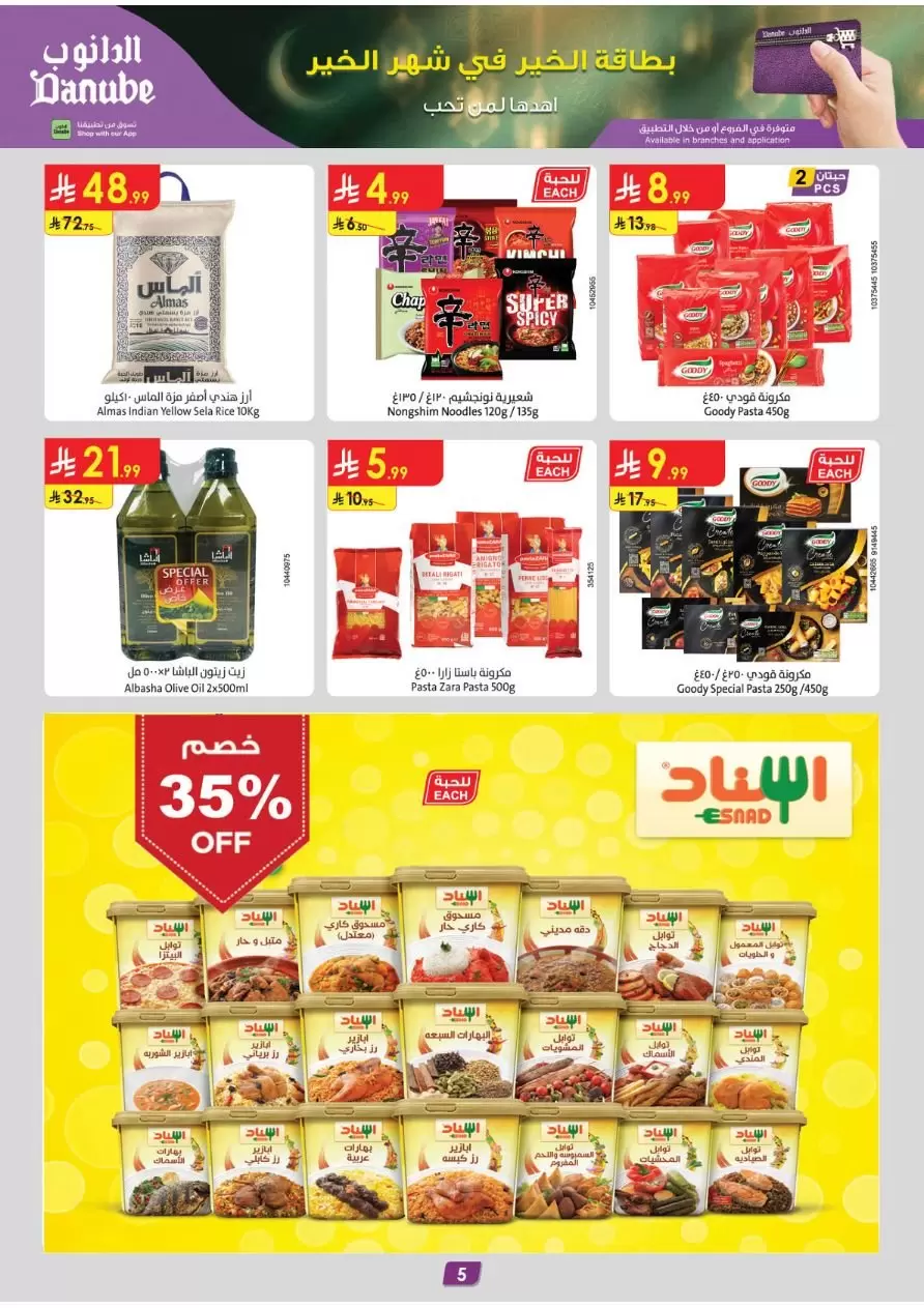 لإعطاء أطباقك نكهة رمضانية أصيلة، تقدم الدانوب خصماً ثابتاً بنسبة 35% على منتجات علامتي مجدي (Majdi) و إسناد (Esnad). تشمل العروض بهارات الكبسة، البرياني، الفلفل الأسود، ومسحوق الكاري.