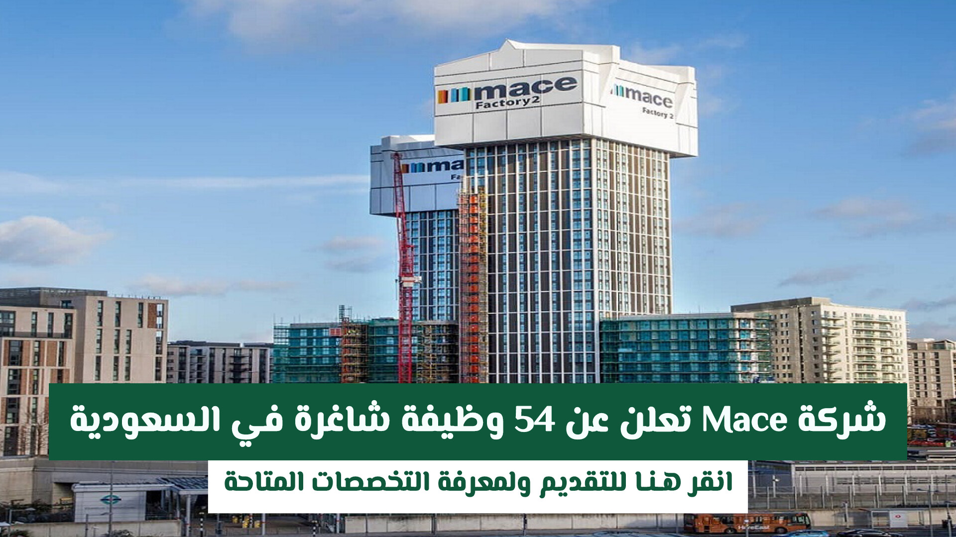 أعلنت شركة Mace الرائدة في مجال الإدارة الهندسية والاستشارات، عن توفر 54 وظيفة شاغرة في السعودية لتغطية مجموعة واسعة من التخصصات والمجالات المهنية. تأتي هذه الفرص ضمن خطط الشركة لتوسيع فريقها المتميز وضمان تنفيذ المشاريع بأعلى معايير الجودة والكفاءة.