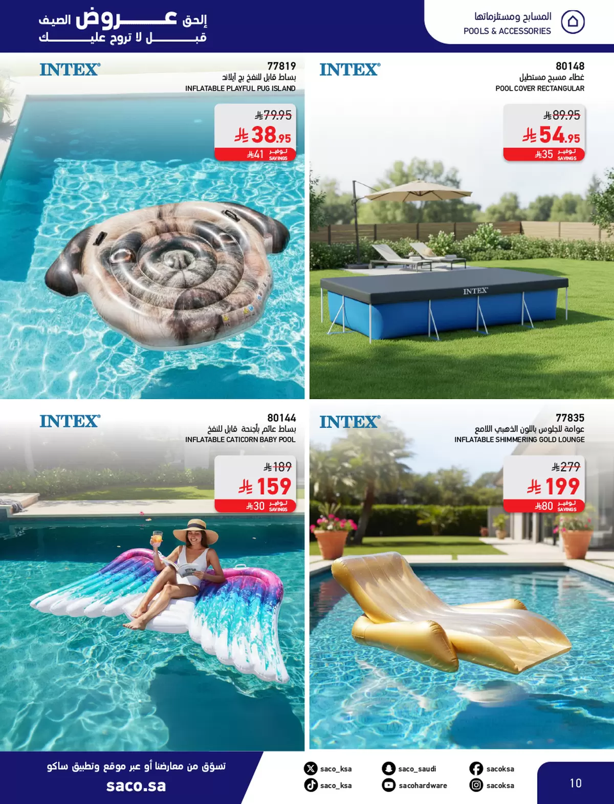- إكسسوارات لا غنى عنها: عروض على مضخات الفلترة، وفلاتر الرمل، ونظارات السباحة، وحتى عوامات الاسترخاء الذهبية والأشكال العصرية مثل "الدونات".