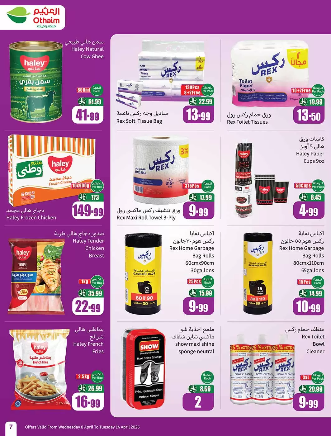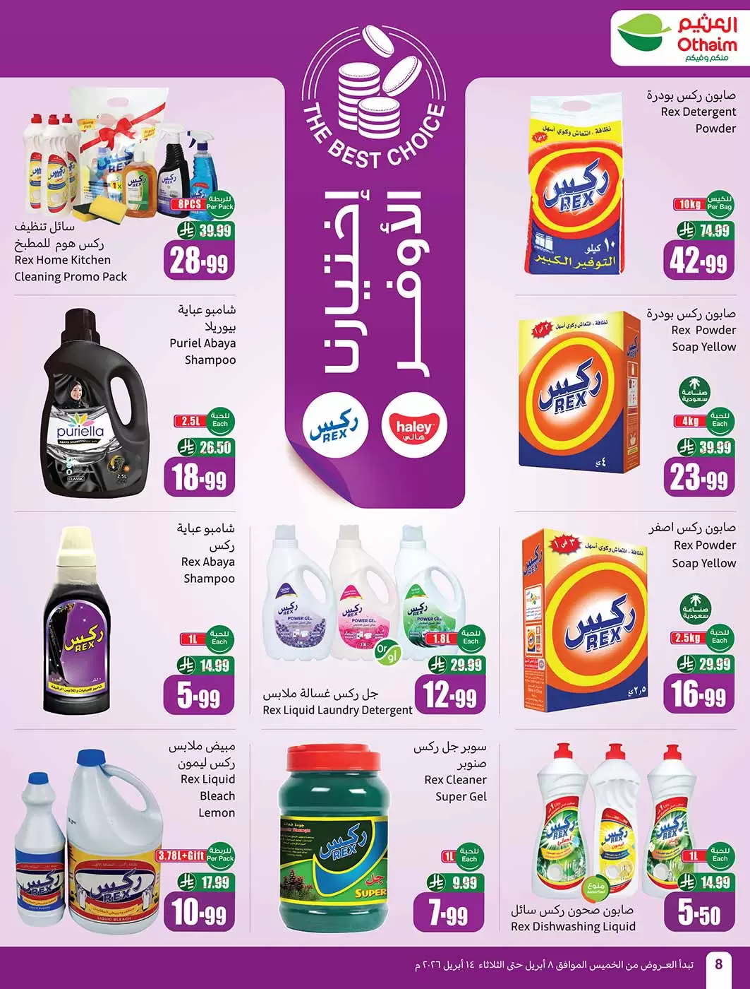 - مطهر ريكس للمراحيض (3 × 1 لتر): السعر قبل 20.99 ريال، السعر الحالي 9.99 ريال.