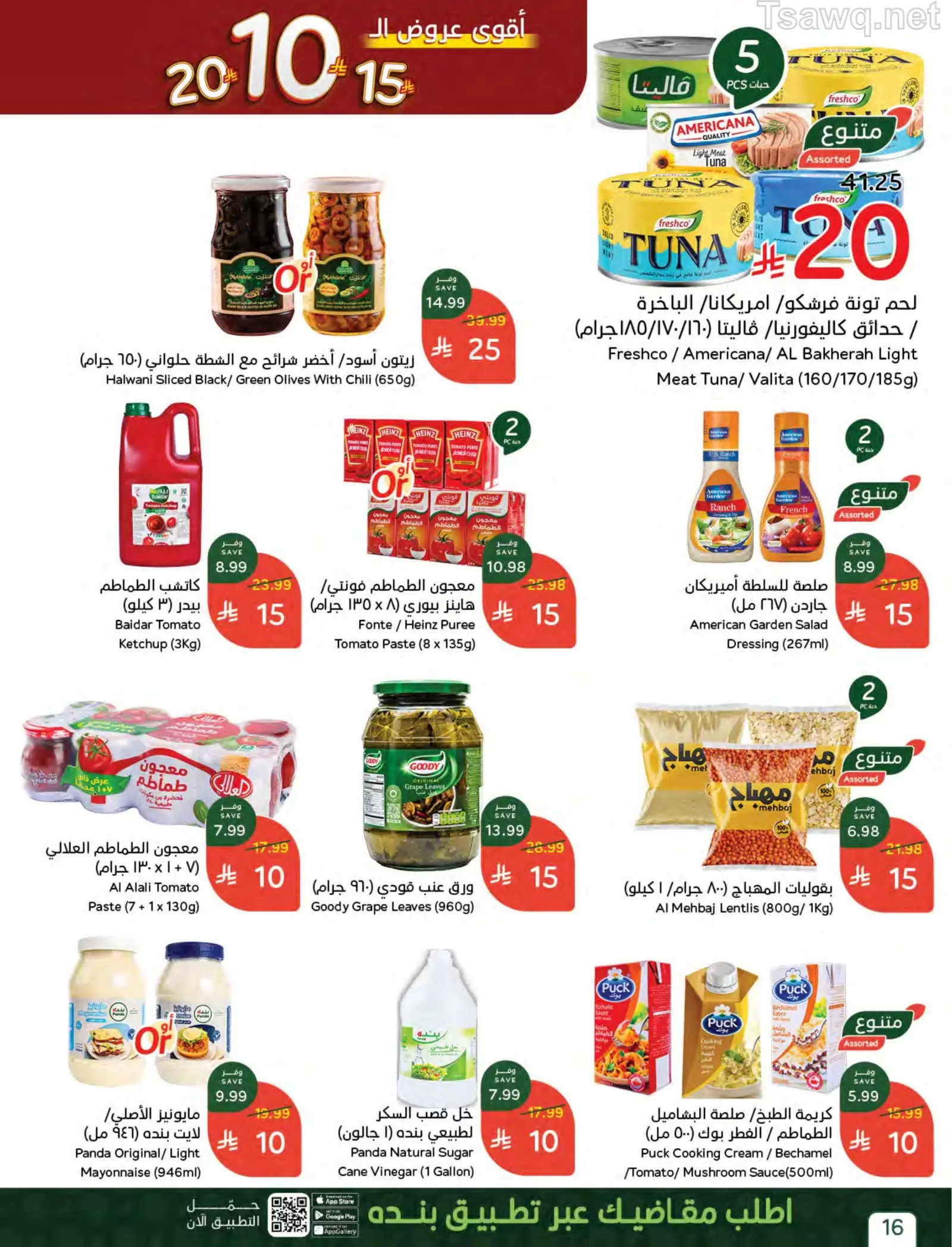 - المعلبات: عروض قوية على تونة فريشكو وأمريكانا (5 حبات بـ 20 ريال)، وشبيهة قشطة بوك (4 حبات بـ 10 ريال).