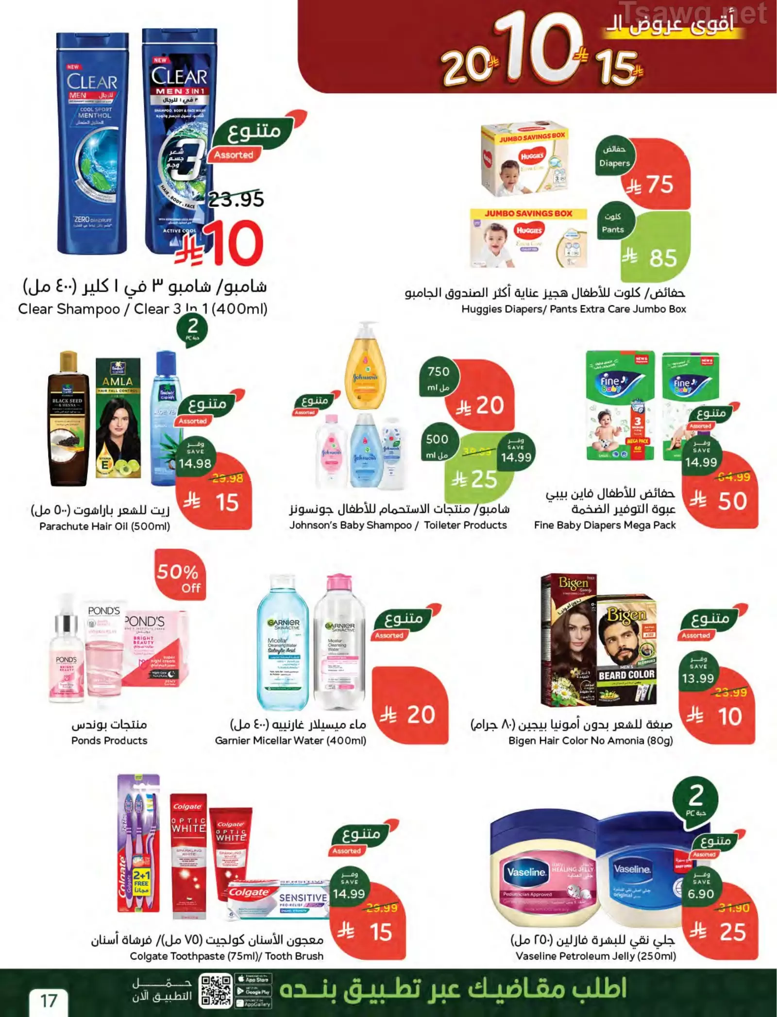 - العناية الشخصية: شامبو كلير أو دوف بـ 10 و20 ريال، ومعجون أسنان سنسوداين أو بارودونتكس بسعر 20 ريال.