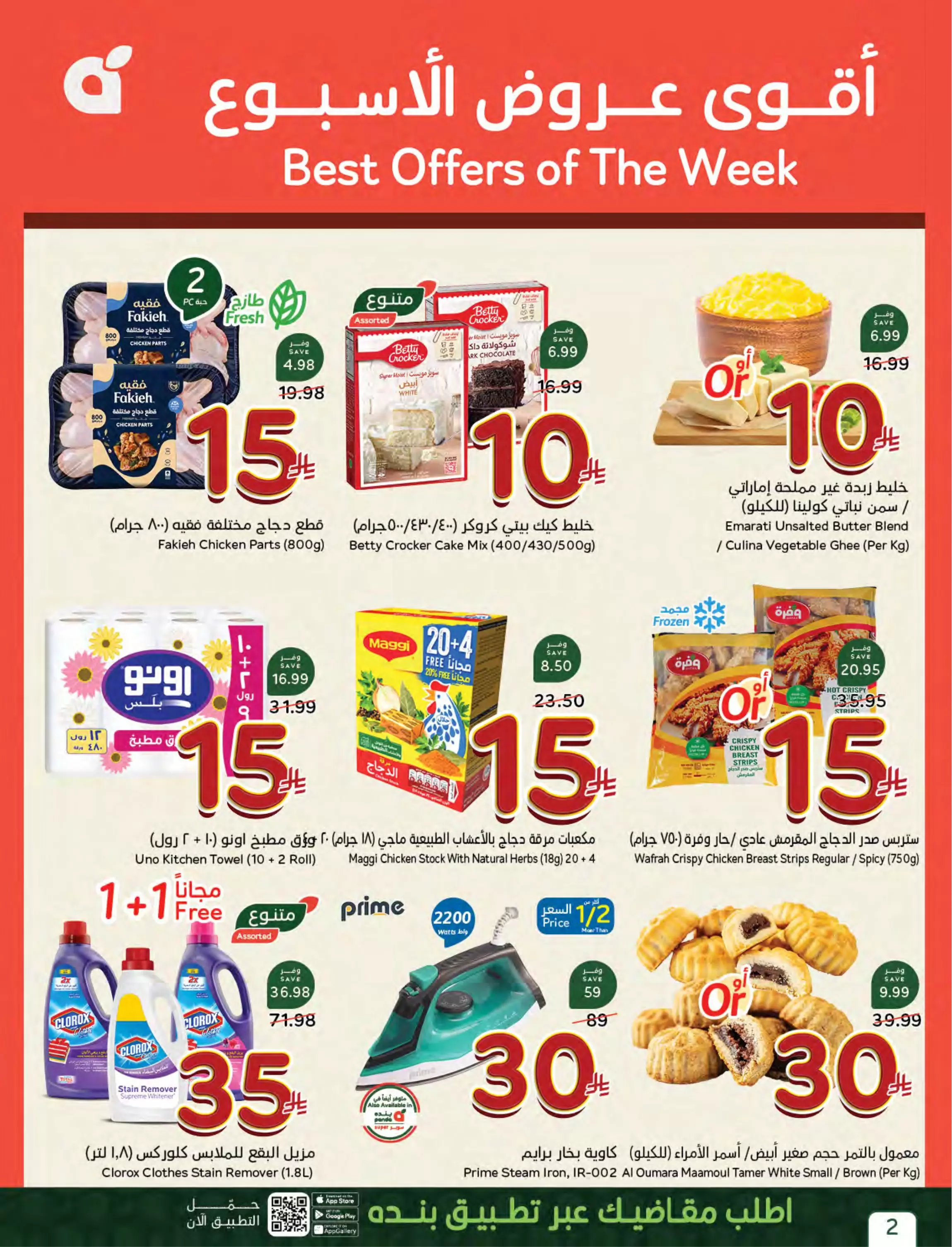- بـ 15 ريال فقط: دقيق فوم (عروض 5+5 مجاناً)، ومنظف البقع كلوركس، وصدور دجاج فقيه (800 جرام).