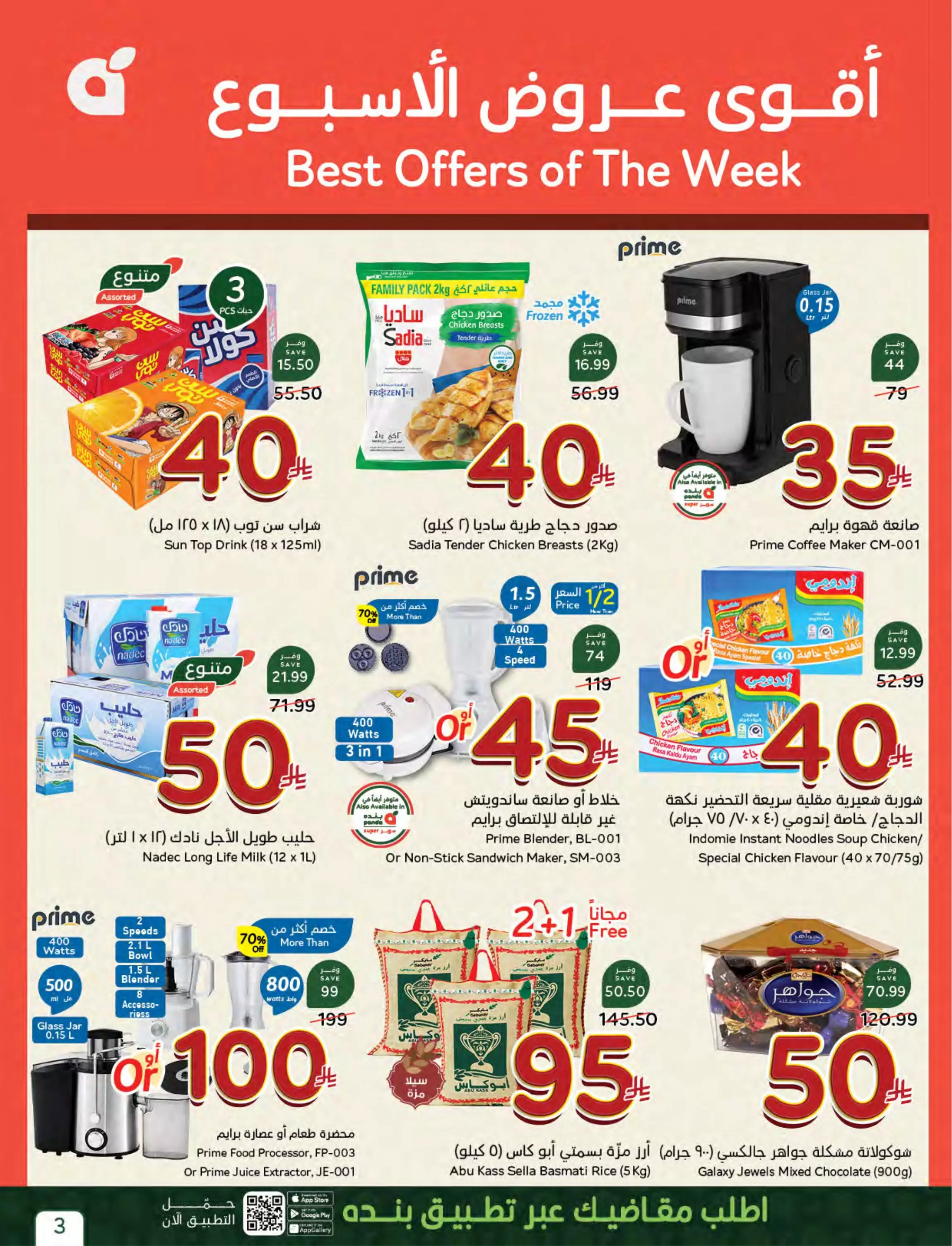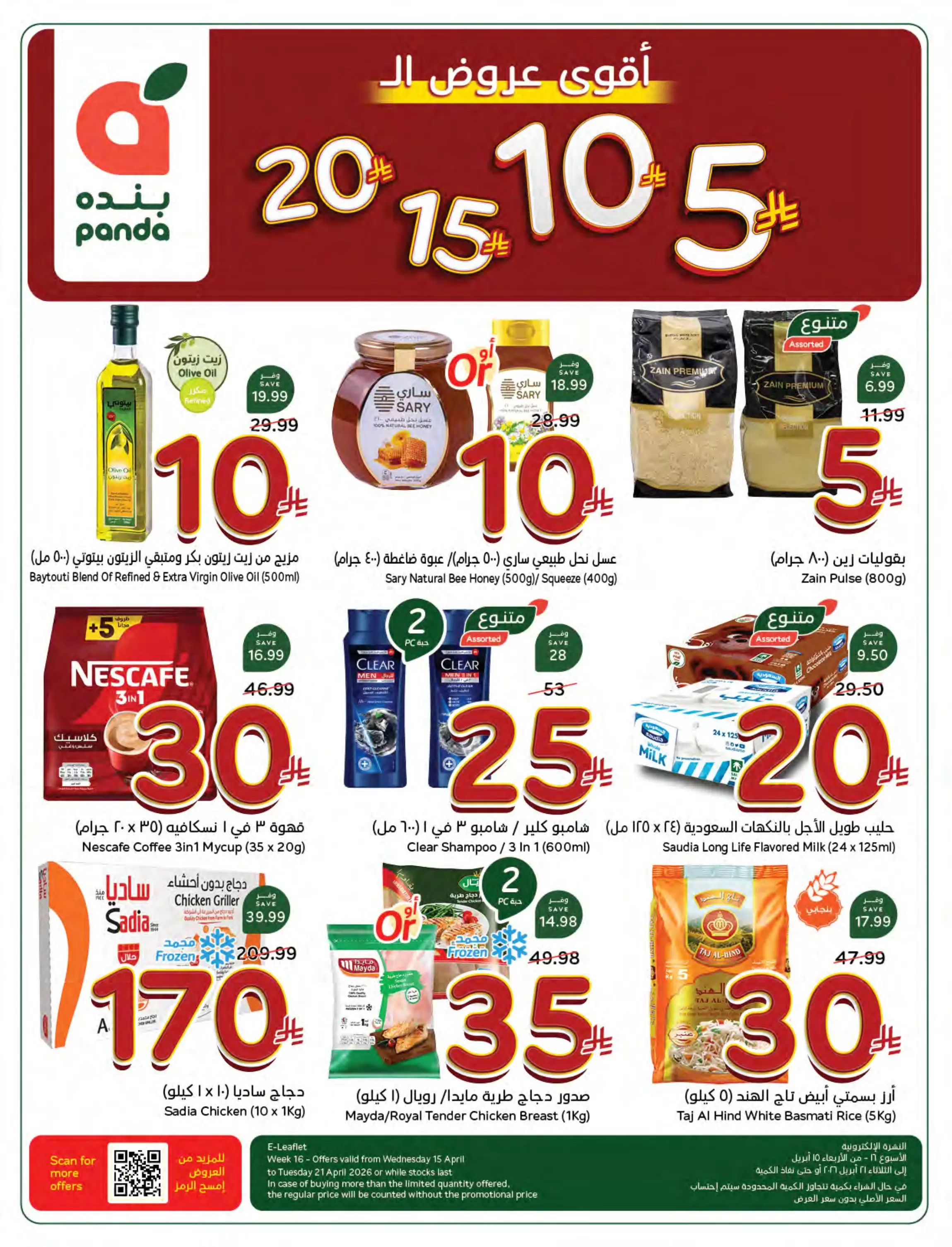 استخدم تطبيق بنده (Panda App) لطلب مقاضيك أونلاين والاستفادة من نقاط "بنده بلس" الإضافية، وتذكر أن هذه العروض سارية من الأربعاء 15 أبريل وحتى الثلاثاء 21 أبريل 2026 أو حتى نفاذ الكمية.