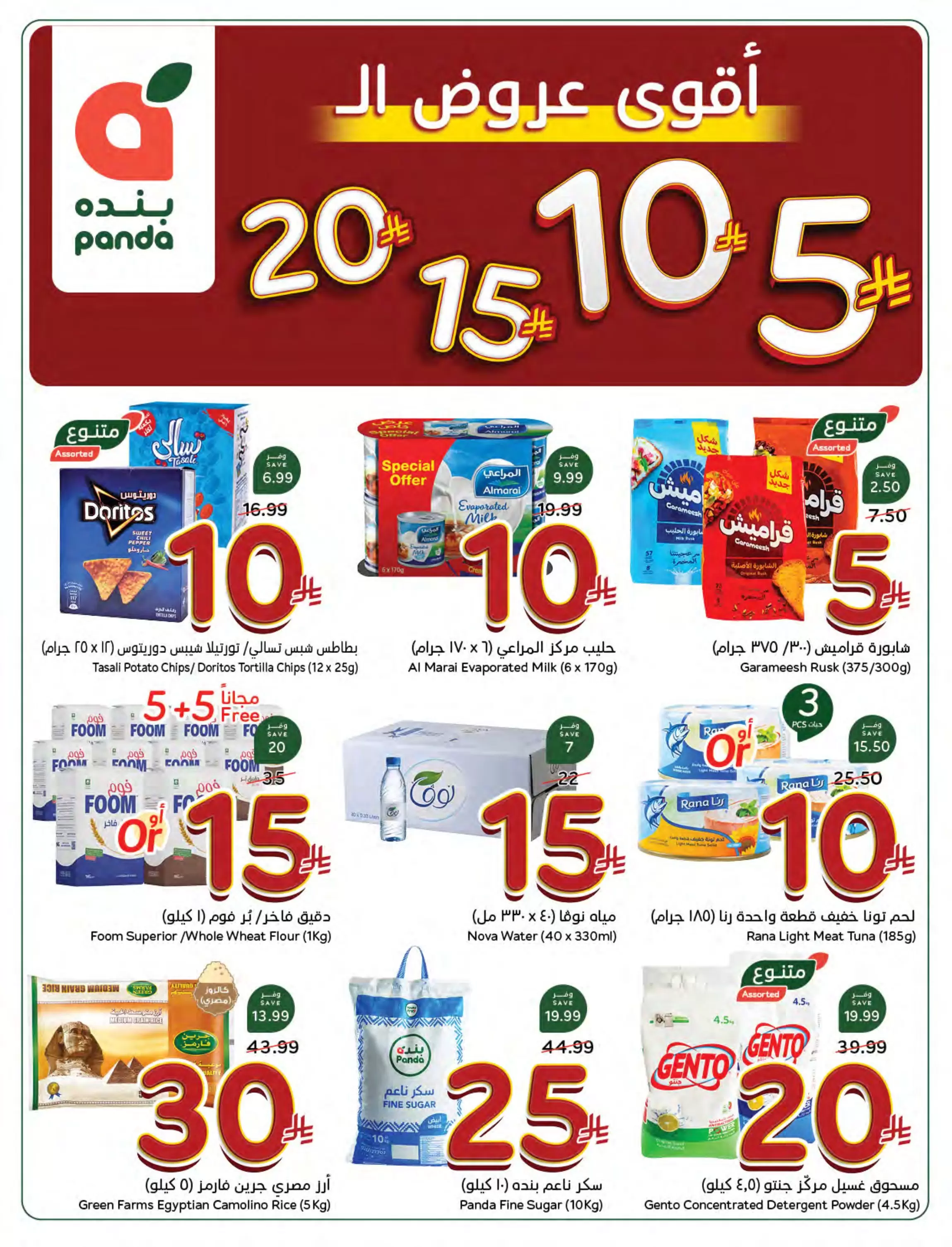 - بـ 20 ريال فقط: حليب السعودية بنكهات (24 عبوة)، وجبنة رومي زينة، ومسحوق غسيل جينتو (4.5 كيلو).