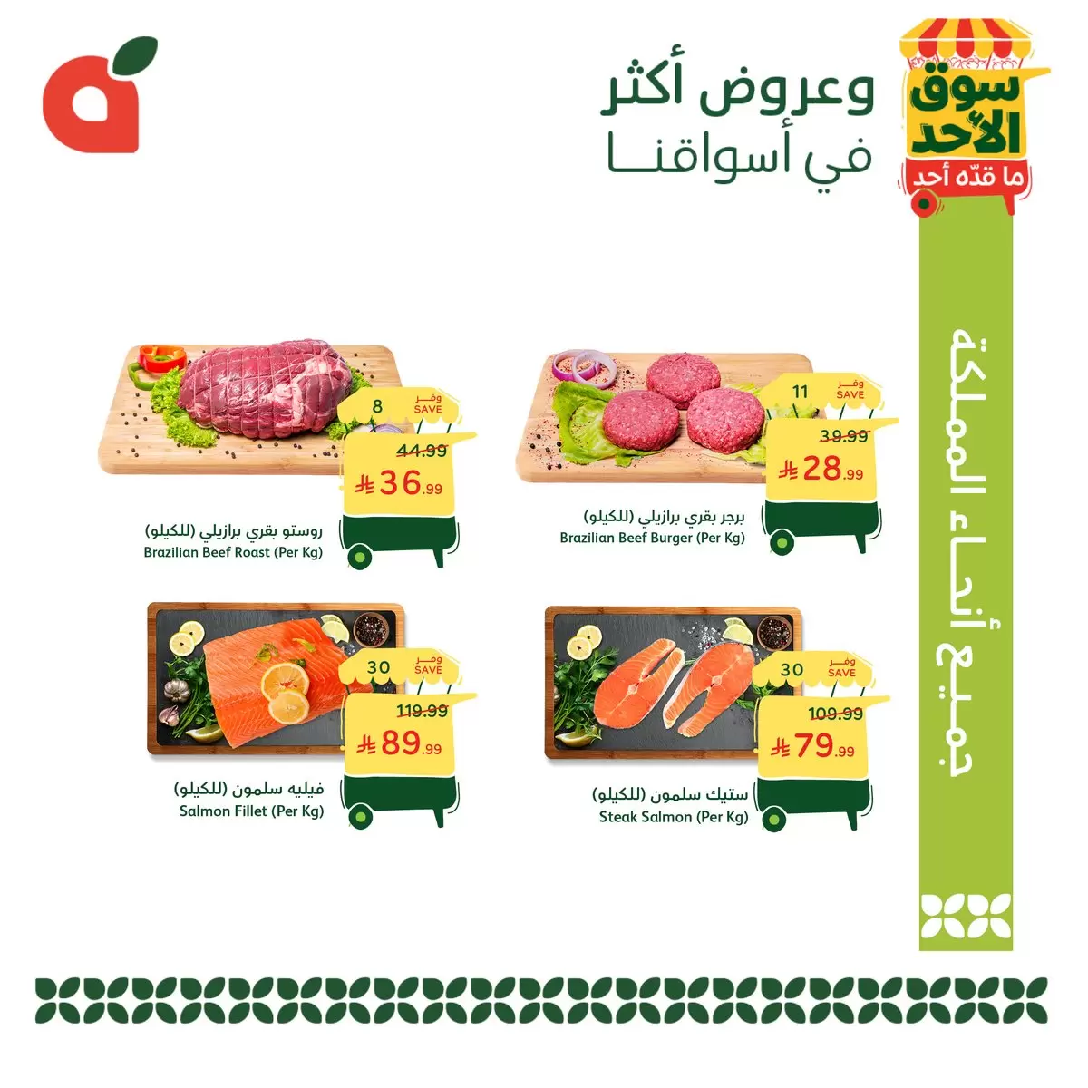 لمحبي الوجبات الصحية واللذيذة، تقدم عروض سوق الأحد خصومات كبرى على الأسماك واللحوم المستوردة تشمل ما يلي:
